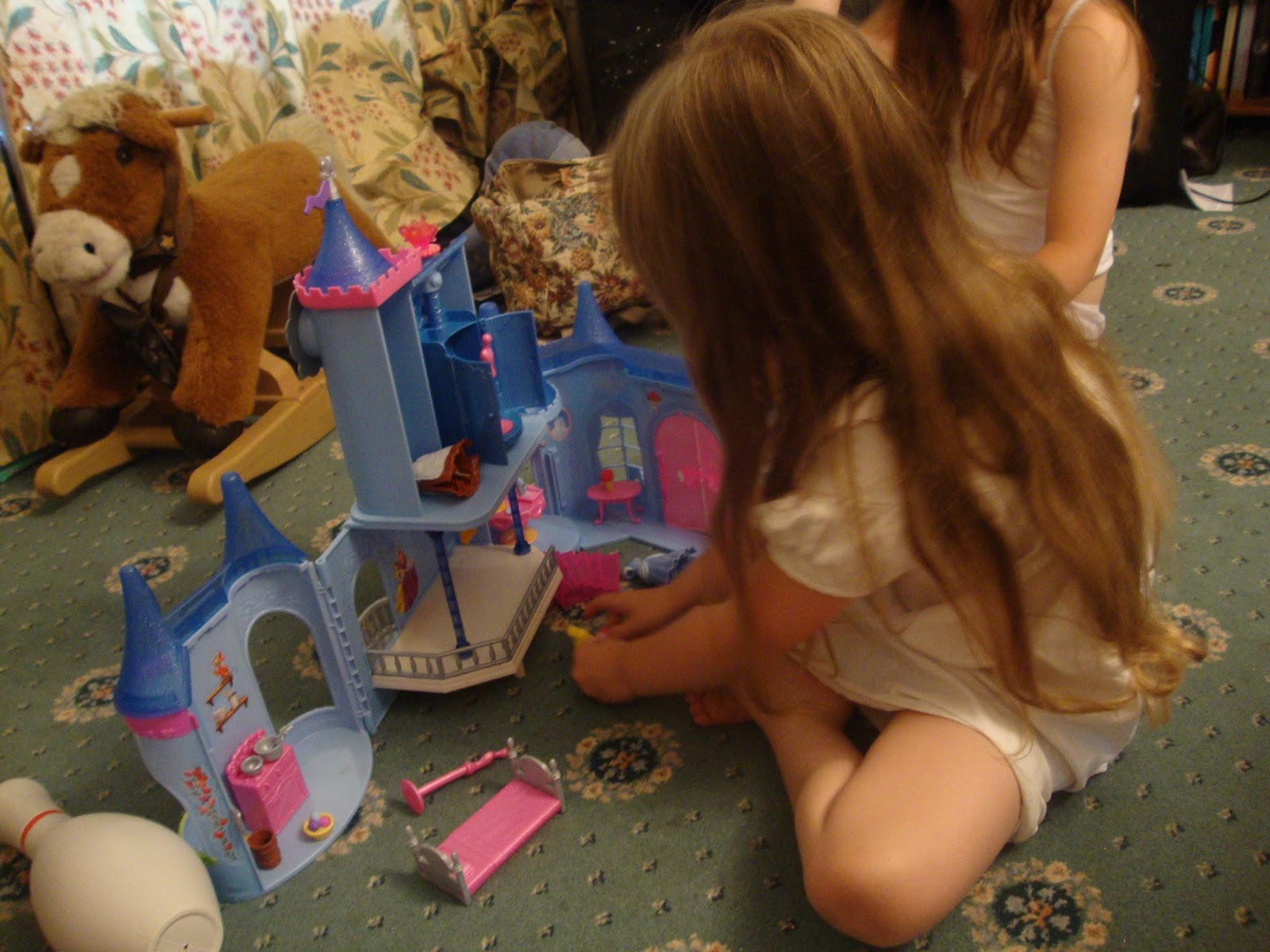 For weeks before her birthday, every time we passed this Cinderella fairytale castle in the shop Emma practically swooned over it, 'OH! I love that castle! I wish I had that castle!' It didn't seem to occur to her that she might get it for her birthday, so she was absolutely over the moon when she opened it. I had assembled it the night before so she could play with it right away and she was one happy little bunny!